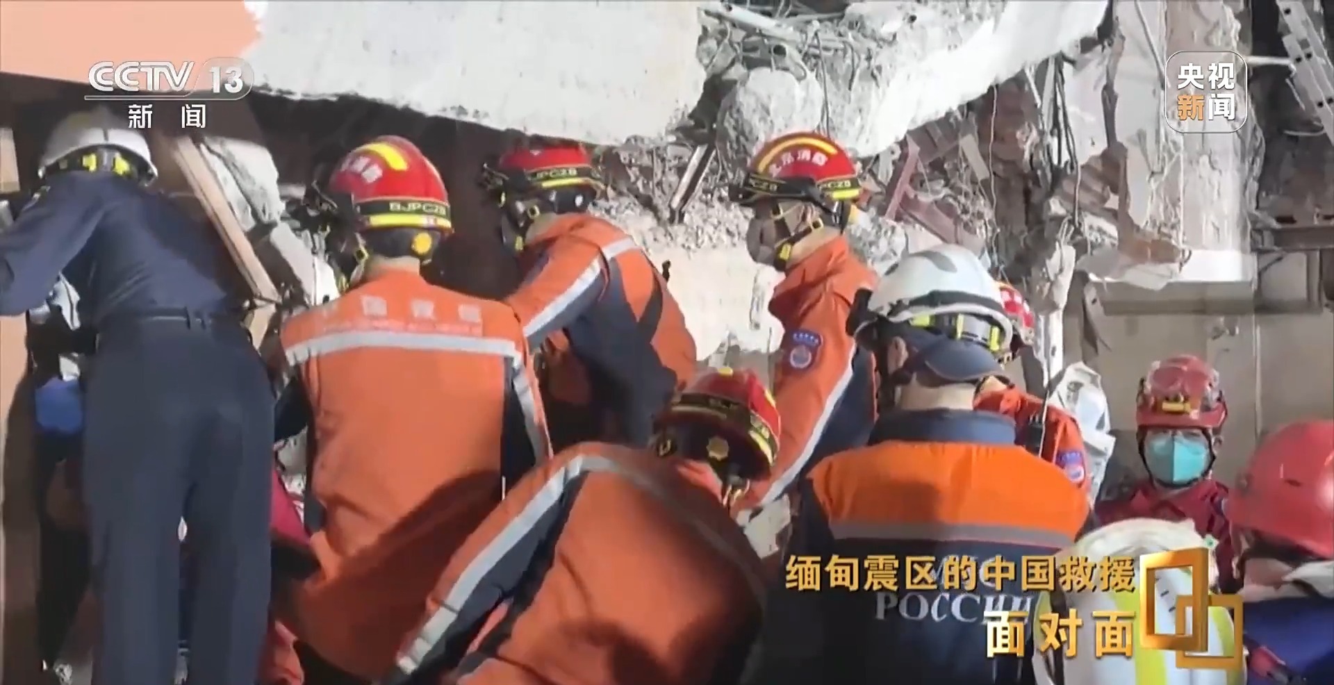 缅甸当地时间4月3日19时,利用救援间隙,《面对面》通过网络连线的方式采访了中国救援队队长赵明。