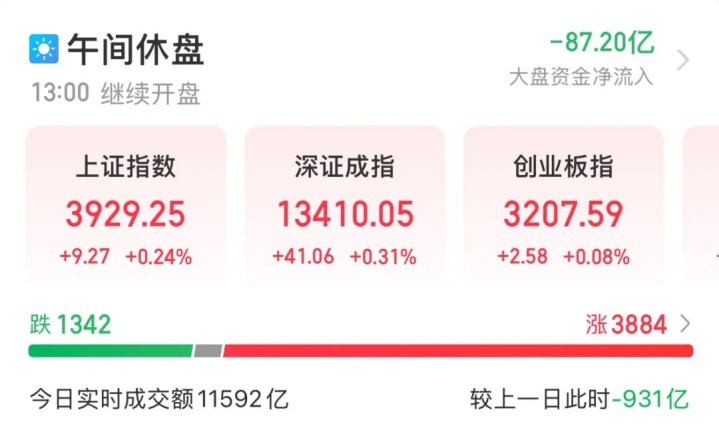 12月24日早盘,A股震荡攀升。截至午间收盘,上证指数报3929.25点,涨0.24%;深证成指、创业板指分别涨0.31%、0.08%。沪深北三市半日成交11592亿元,中际旭创成交额97.12亿元,位居A股第一,该股盘中涨超2%网络配资开户,总市值一度突破7000亿元。
